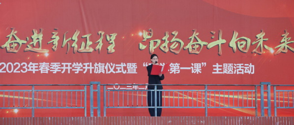 本网讯(通讯员 刘健美王炜婷 摄影 高雨欣 张欧静 何莫妍 朱羽杰)2月27日清晨,我校在田径运动场举行2023年春季开学升旗仪式暨“开学第一课”主题活动。全体校领导、各职能部门负责人、各学部负责人(主任、书记、副书记)、辅导员、学工部(团委)工作人员、团学指导教师、学生党员代表(含入党积极分子)、校级和学部团学干部代表、学生代表参加了本次活动。