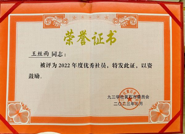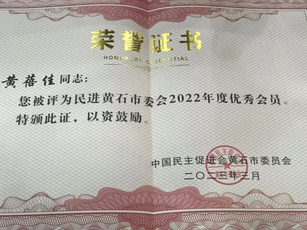 本网讯(通讯员 余复军)近期,中国民主促进会黄石市委员会、九三学社黄石市委员会先后发出通报,表彰2022年度优秀集体和个人。我校教务部黄蓓佳老师被评为民进黄石市委会2022年度优秀会员,教育与艺术学部王丝雨老师被评为九三学社黄石市委员会2022年度优秀社员。