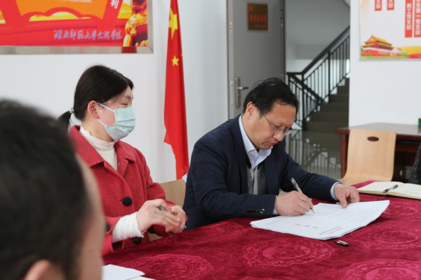 党委书记杨邓红与部分部门(学部)代表签订《2023年意识形态工作目标管理责任书》。