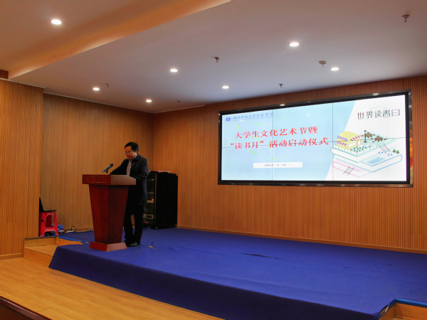 本网讯(通讯员 刘健美)3月31日中午,我校在图书馆报告厅举行了大学生文化艺术节暨“读书月”活动启动仪式。校党委副书记杨之毛,党委宣传部副部长陶晚成,学生工作部部长汪崇文,学生工作部副部长、团委书记陈荟芸,图书馆馆长郑荣臻以及百余名学生代表参加了此次启动仪式。本次活动由郑荣臻主持。