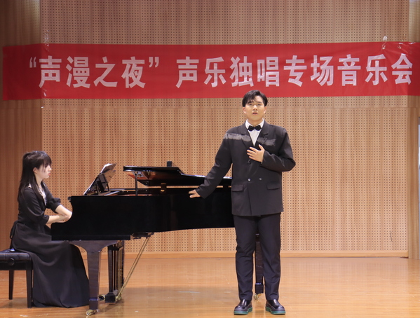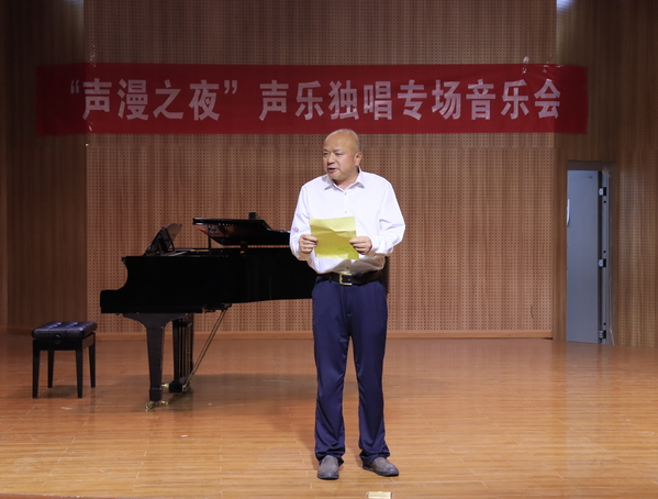 本网讯(通讯员 李湘湘)2023年4月3日晚7点,我校在大学生活动中心302音乐厅举办了大学生艺术节之“声漫之夜”声乐独唱专场音乐会,教育与艺术学部全体师生齐聚一堂,共享音乐盛宴。本次活动由学部王文主任,李先华书记总策划,旨在拓展大思政课建设,培养学生爱国情怀,展现学生青春活力。
