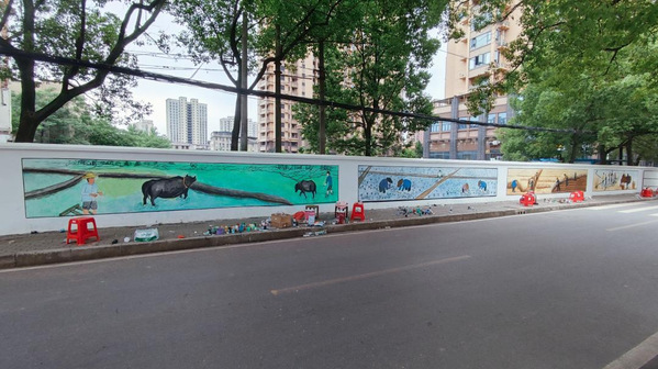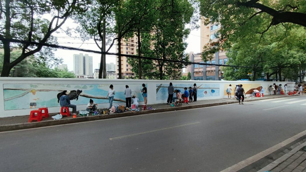 绘画的内容以花湖农场历史文化为主,四季更迭与农场文化相辉映,春耕、夏种、秋收、冬藏的农耕文化呼之欲出。既美化了花湖路街道,又展示了花湖农场的历史文化,成为一道靓丽的风景线。此次活动既展现了我校教育与艺术学部师生风采,也为共建和谐社区,共享美好生活贡献一份力量。