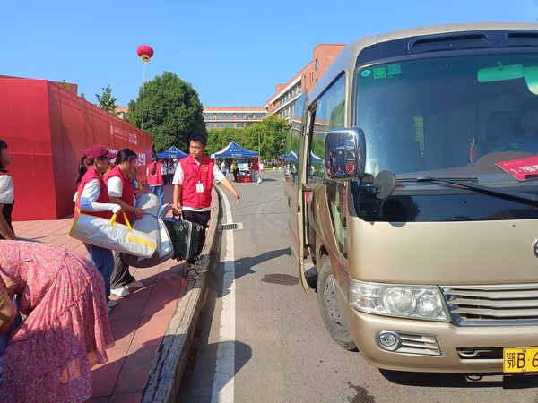 为方便新生报到,我校在黄石火车站、黄石北站、黄石综合客运枢纽、大冶北站设置校外迎新点,安排专人专车接送新生。校内主要路口都设有温馨提示牌和路线图,方便新生及家长查看。党员干部下沉一线,各学部建立“党员示范岗”展示党员形象,700多名青年志愿者工作在新生接待、行李转运、道路指引、问题咨询等前沿阵地,教职工和学生党员、青年志愿者积极参与到迎新工作中,从新生入校到入住寝室,为学生提供全过程的“一站式”服务。