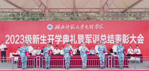 本网讯(通讯员 刘健美)9月28日上午,我校举行2023级新生开学典礼暨军训总结表彰大会。全体校领导,各职能部门、各学部(院)负责人,师生代表、全体新生辅导员及2023级全体新生和教官参加典礼。典礼由校党委书记杨邓红主持。