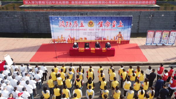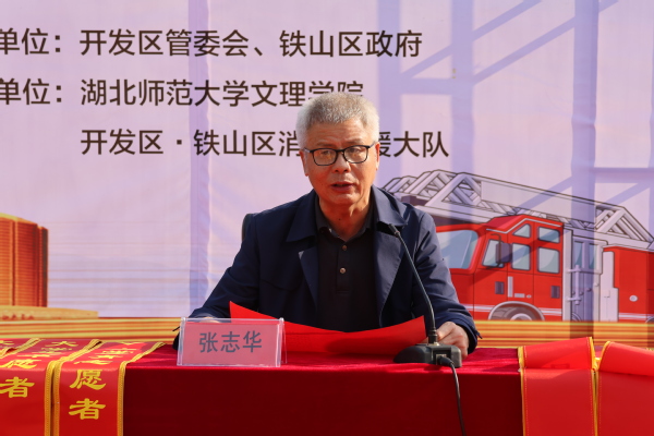 本网讯(文 涂亦乐 图 梁宏滨 刘柯嘉 梅发开)遏难于未发,防患于未“燃”。为扎实做好校园消防宣传工作,进一步增强师生消防安全意识和紧急避险能力,创造安全稳定的校园环境,11月8日下午,以“预防为主、生命至上”为主题的2023年黄石经济技术开发区·铁山区“119”消防宣传月启动仪式在我校隆重举行。副院长张志华,开发区党工委委员、区委常委、管委会副主任、副区长龚晖,区消防救援大队大队长陈鹏,政治教导员胡俊,区公安分局、教育局、文旅局、卫健局,区消防指战员代表,我校师生代表以及社会各界群众代表共计200余人参加了此次活动。
