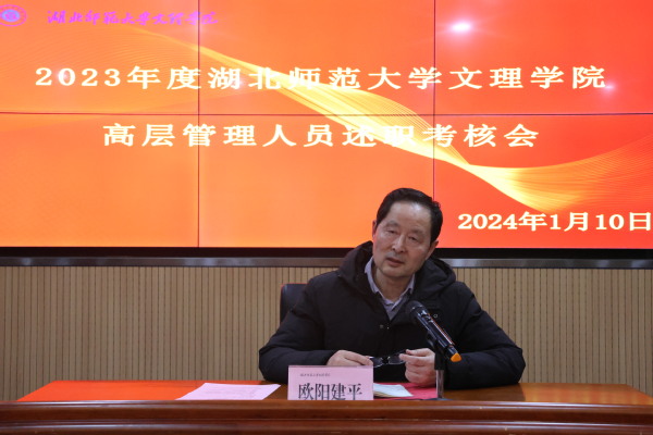 李开灿在介绍完本次考核的目的和要求后,五位考核对象依次进行述职。常务副院长杨学斌全面总结2023年学校行政工作,并对2024年的工作进行部署。党委书记杨邓红系统总结了2023年学校党务工作,进一步部署2024年的党建和思想政治工作。党委副书记杨之毛、副院长张志华、副院长王胜国分别就各自分管工作,总结了2023年取得的成绩,介绍了2024年的工作目标。