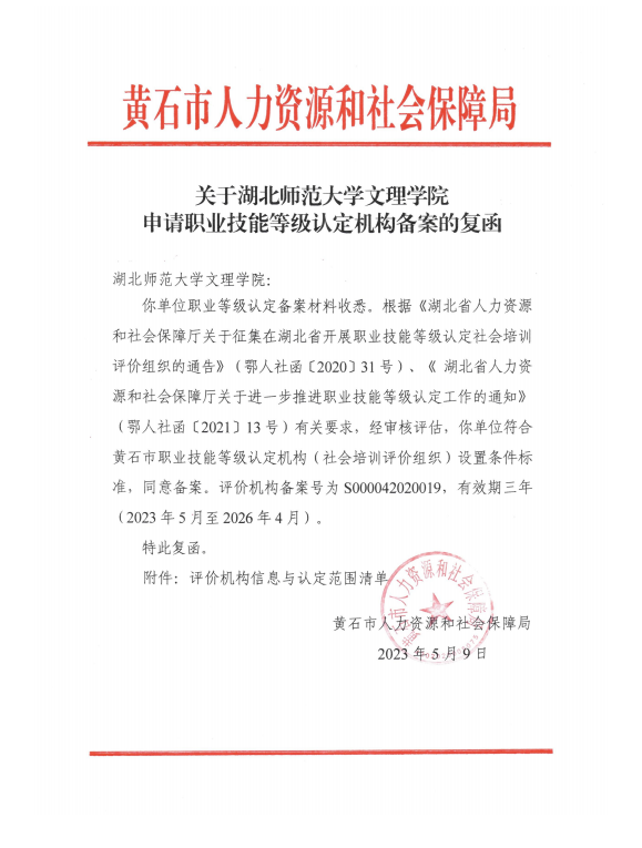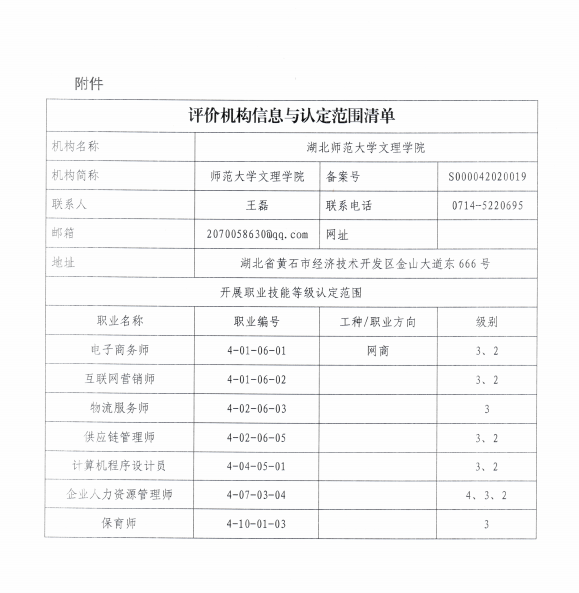 本网讯(通讯员 王磊)根据黄石市人力资源和社会保障局《关于马博在线登录申请职业技能等级认定机构备案的复函》消息,我校成功获批职业技能等级认定机构资质,具备电子商务师、互联网营销师、企业人力资源管理师、物流服务师、供应链管理师、计算机程序设计员、保育师等共7大类3个等级的职业技能等级认定资格。