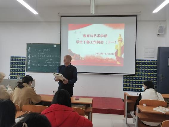 2022年11月18日中午12:00,在实验楼1-403多媒体教室组织召开学生干部工作例会。学部辅导员、全体团学会干部及各专业班级负责人到会,例会由总支书记李先华主持。