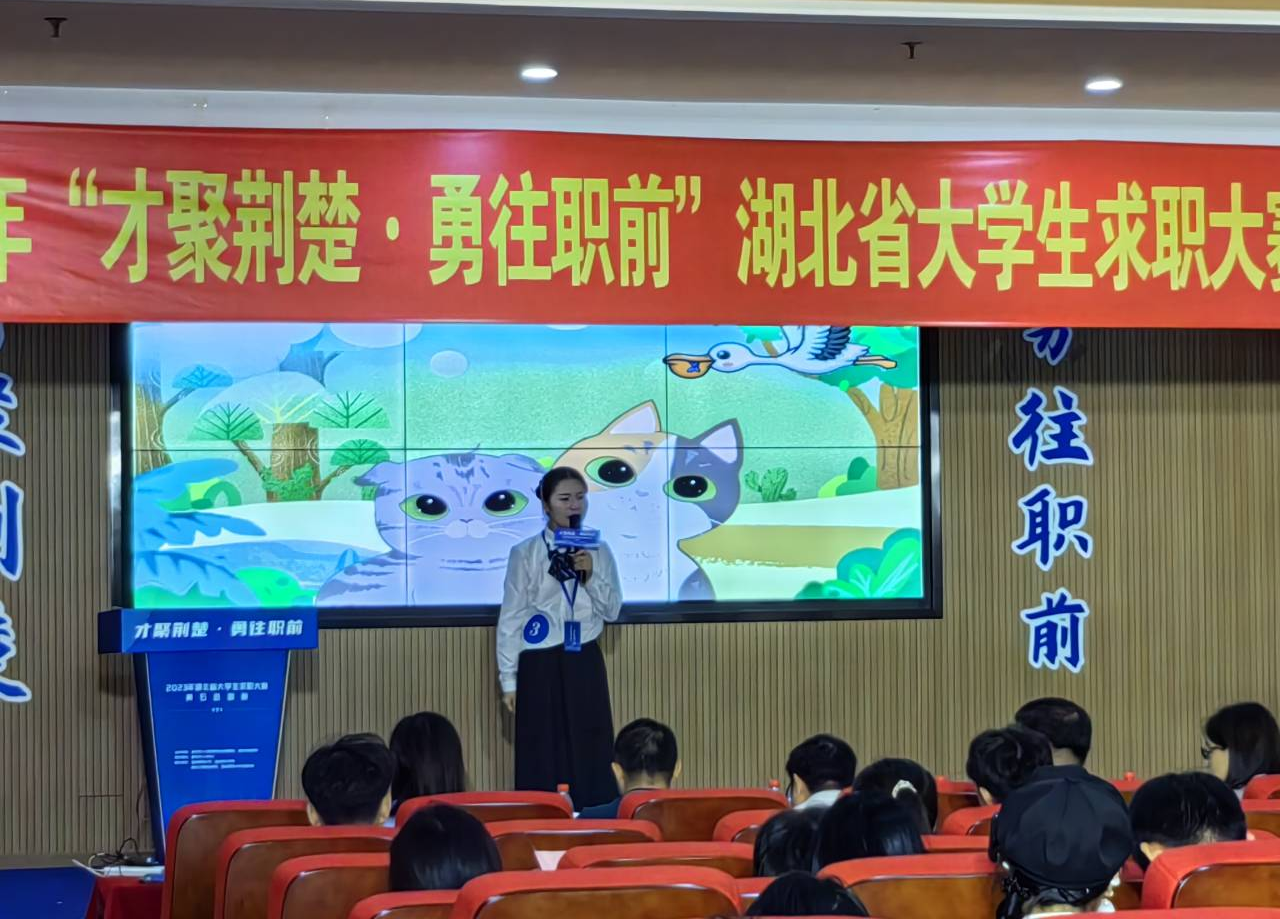 9月26日上午9:00,2023年“才聚荆楚·勇往职前”湖北省大学生求职大赛黄石选拔赛于马博在线登录图书馆报告厅举行。来自黄石市四所高校的12位选手同台竞技,全力以赴,展现风采。比赛共有四个环节,分别为自我介绍、才艺展示、情景模拟、现场问答。教育与艺术学部的李婷同学以新颖的自我介绍方式,精彩的才艺展示,良好的反应能力获得了评委的好评,也获得了在场观众的阵阵掌声。李婷同学最终以89.7的高分,排名第四,荣获优胜奖。