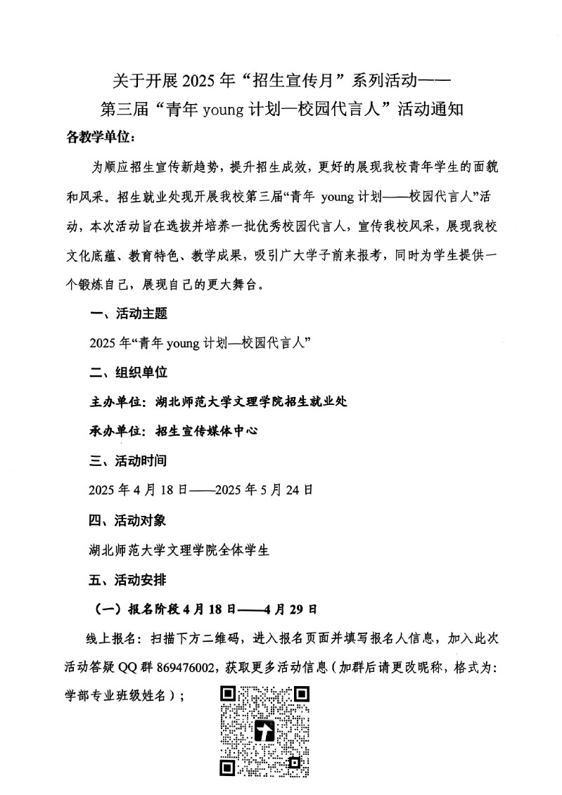 关于开展2025年“招生宣传月”系列活动—— 第三届“青年young计划—校园代言人”活动通知